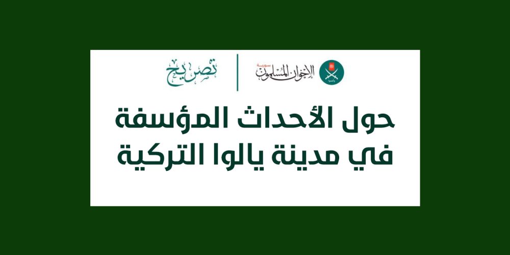 إننا في جماعة الإخوان المسلمين في سورية، نتابع الأحداث المؤسفة التي شهدتها محافظة يالوا في تركيا، والتي أدّت إلى استشهاد ثلاثةٍ من عناصر الأمن وجرح آخرين، أثناء مواجهة الإرهابيين..