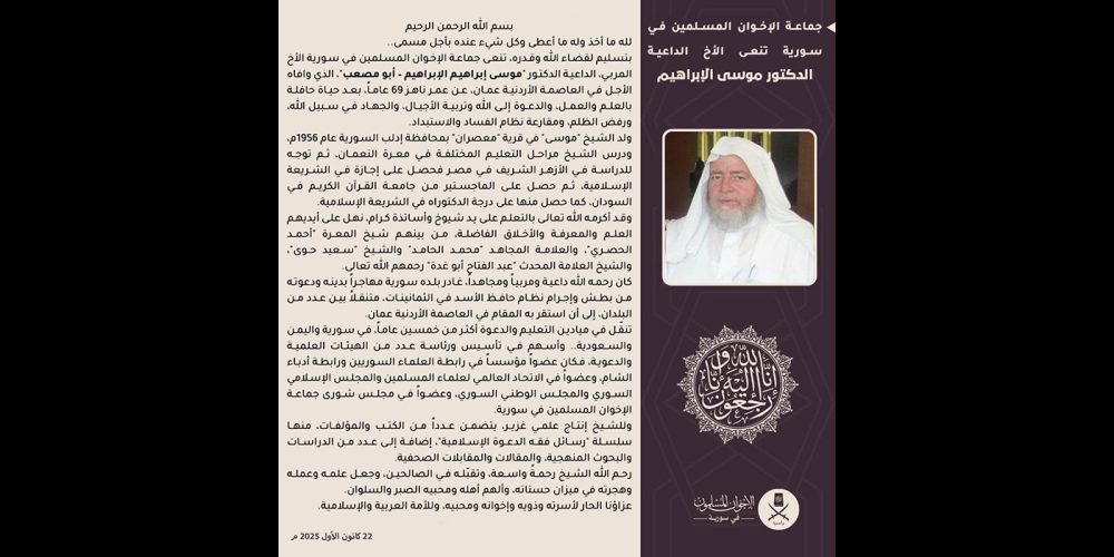 في وداع الراحلين.. الداعية العالم العامل الدكتور موسى الإبراهيم “أبو مصعب”