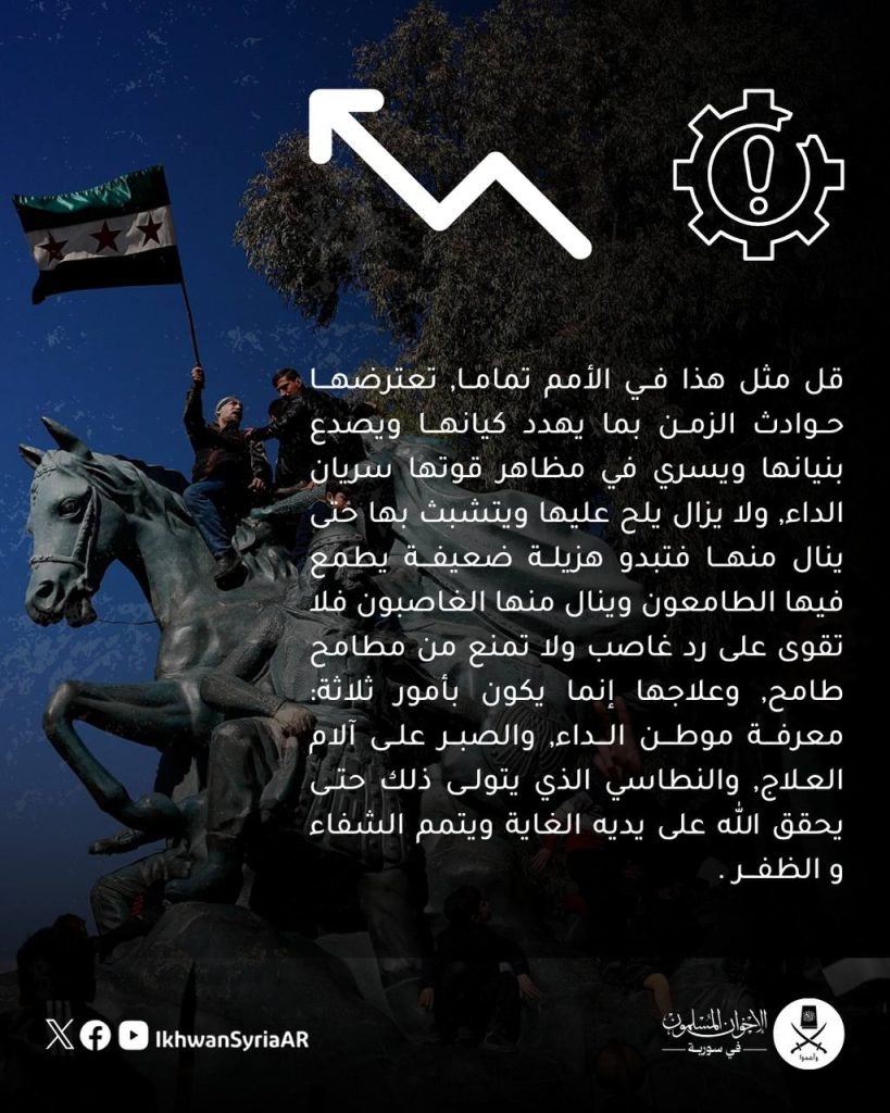 قُل مثل هذا في الأمم تماماً، تعترضها حوادث الزمن بما يهدّد كيانها ويصدّع بنيانها ويسري في مظاهر قوتها سريان الداء، ولا يزال يلحّ عليها ويتشبّث بها حتى ينال منها، فتبدو هزيلة ضعيفة يطمع فيها الطامعون وينال منها الغاصبون، فلا تقوى على ردّ غاصب ولا تمنع من مطامح طامح. وعلاجها إنما يكون بأمور ثلاثة: معرفة موطن الداء، والصبر على آلام العلاج، والنطاسيّ الذي يتولى ذلك حتى يحقق الله على يديه الغاية ويتمّم الشفاء والظفر.