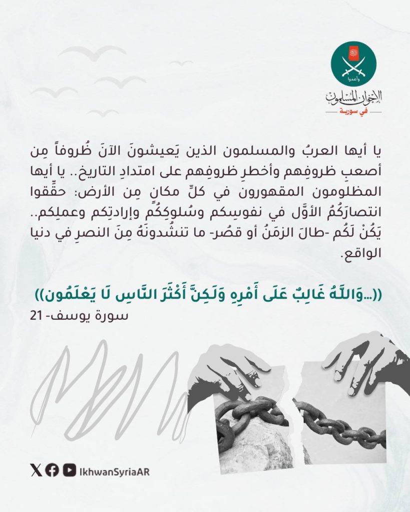 يا أيها العربُ والمسلمون الذين يَعيشونَ الآنَ ظُروفاً مِن أصعبِ ظروفِهم وأخطرِ ظروفِهم على امتدادِ التاريخ..