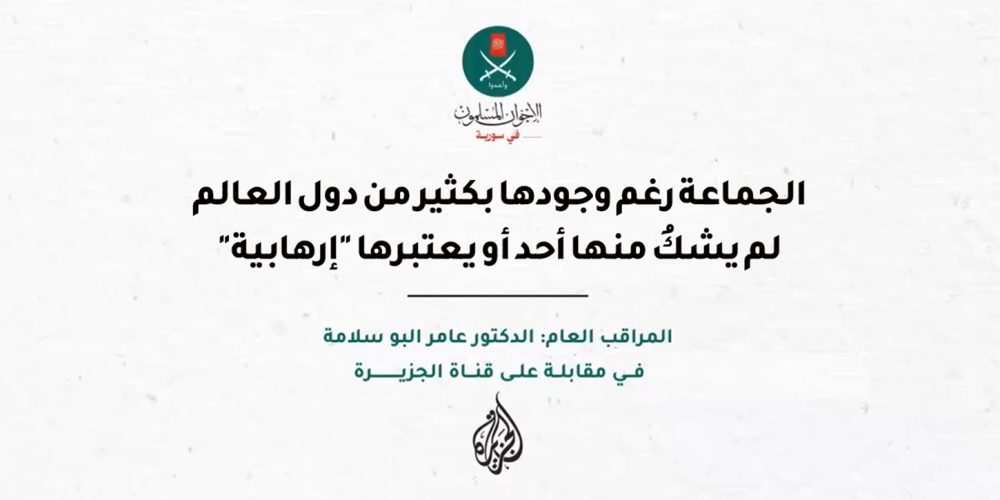 أكد فضيلة المراقب العام لجماعة الإخوان المسلمين في سورية د. “عامر البو سلامة” أنّ الجماعة -رغم وجودها الطويل في كثير من دول العالم- لم يشكُ منها أحد أو يعتبرها “إرهابية”.