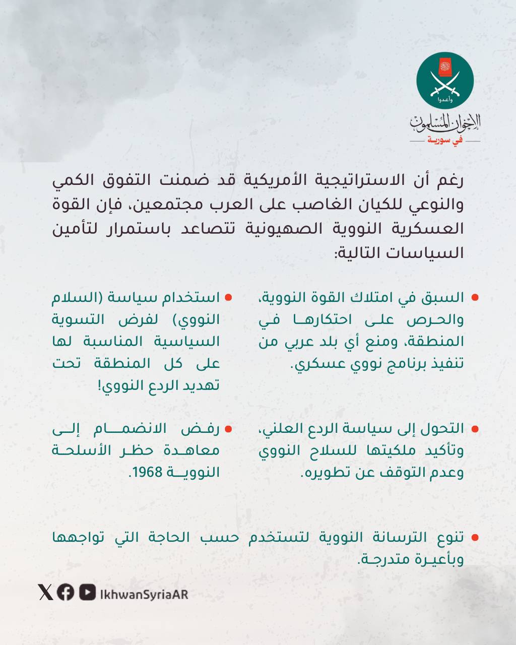 استخدام سياسة (السلام النووي) لفرض التسوية السياسية المناسبة لها على كل المنطقة تحت تهديد الردع النووي!