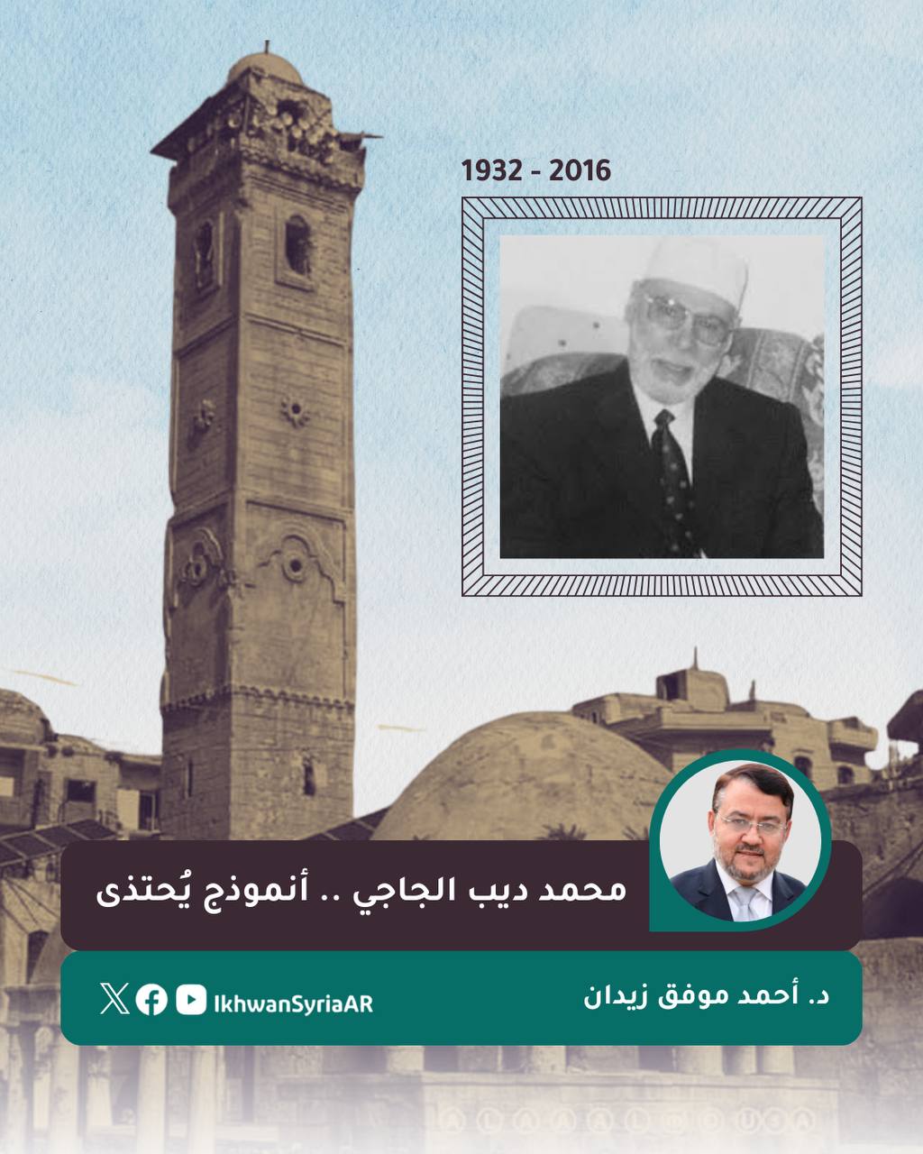الدكتور محمد ديب الجاجي من مواليد معرة النعمان بلدة الشاعر الذي أطبق ذكره الآفاق أبي العلاء المعري. ولد الجاجي رحمه الله عام 1932 ونال درجة القانون من جامعة دمشق وكان ضابط شرطة مستقيماً شهد له كل من عمل معه في الحسكة وإدلب خلال فترة الستينيات، والتحق بجماعة الإخوان المسلمين منذ نعومة أظفاره، وتدرج في الجماعة ليصل إلى منصب رئيس مجلس شوراها قبل أن يغادر الشام مطلع الثمانينيات، وخلال الفترة العصيبة من تاريخ الخلاف البيني للجماعة عام 1985 قادها كمراقب عام فكان مراقب المرحلة بحق..