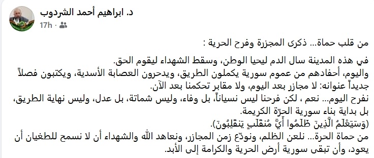 من قلب حماة… ذكرى المجزرة وفرح الحرية :