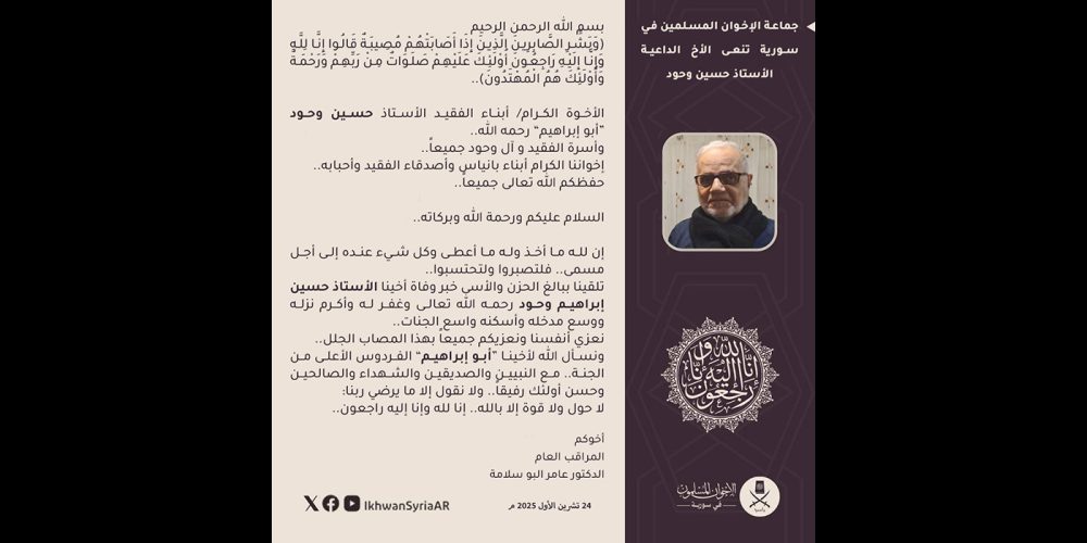 فضيلة المراقب العام لجماعة الإخوان المسلمين في سورية يعلّق على دعوات حل الجماعة ويوضّح موقفهم من السلطة الجديدة محرر الموقع11 سبتمبر، 2025
