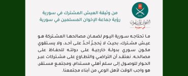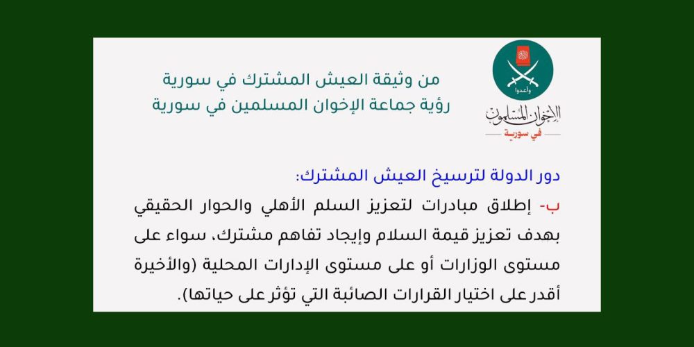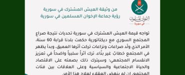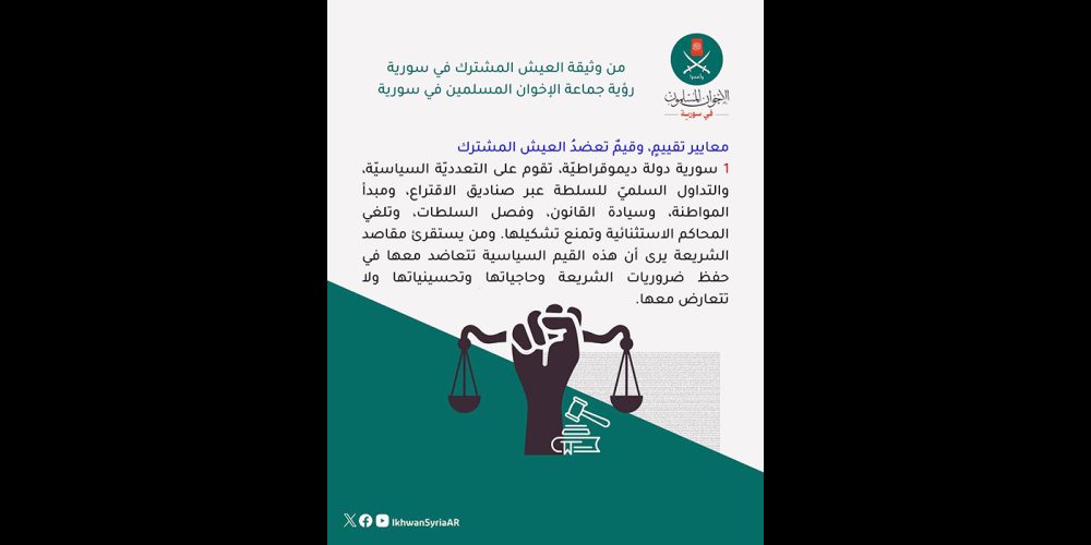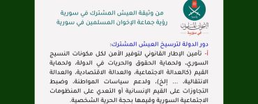من وثيقة العيش المشترك.. رؤية إخوان سورية: دور الدولة لترسيخ العيش المشترك | إطلاق مبادرات تعزيز السلام الأهلي والحوار الحقيقي محرر الموقع4 نوفمبر، 2025