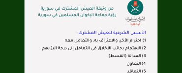 من وثيقة العيش المشترك في سورية – رؤية جماعة الإخوان المسلمين في سورية: معايير تقييم وقيم تعضد العيش المشترك محرر الموقع16 نوفمبر، 2025