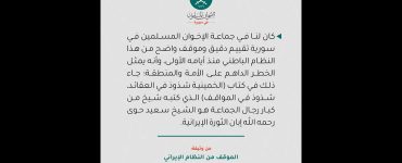 موقف إخوان سورية من النظام الإيراني: نرفض سعي نظام إيران للتواصل مع الحركات الإسلامية في محاولة كسب ود الجماهير العربية لإعطائه بعداً إسلامياً شعبياً محرر الموقع7 مارس، 2026