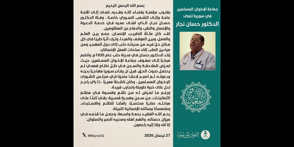 جماعة الإخوان المسلمين في سورية تعزي ليبيا الشقيقة بضحايا الفيضانات